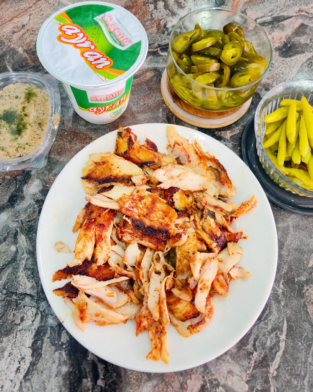 Yanında; Ayran, Biber Turşusu ve Tatlı ikramımız, döner fiyatına dahil olarak servis edilmektedir.